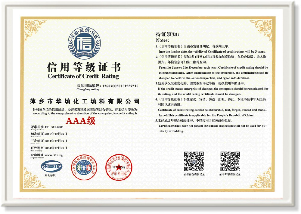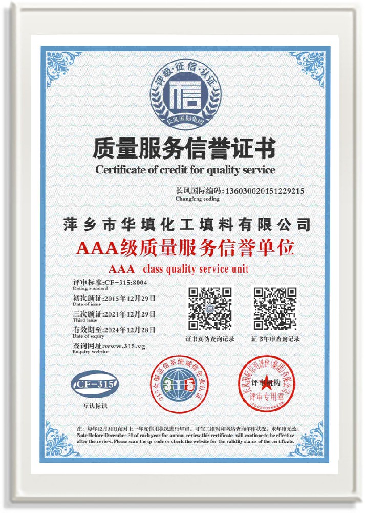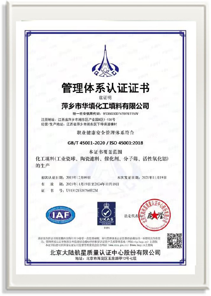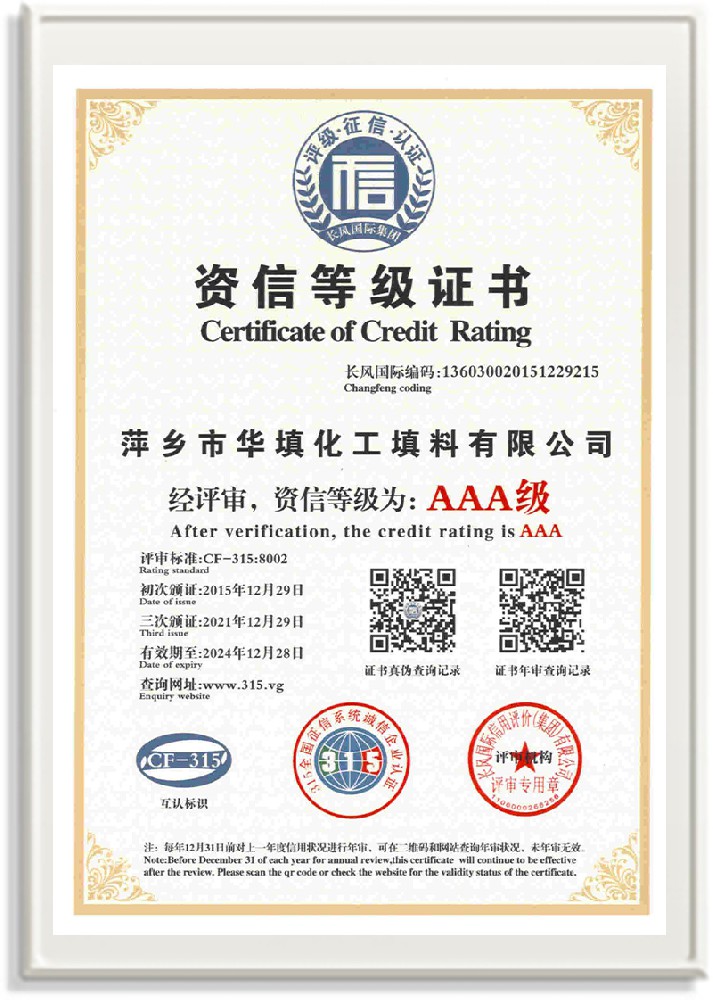 萍鄉(xiāng)市華填化工填料有限公司,位于320國(guó)道、109國(guó)道、浙贛鐵路、昌金高速公路貫穿其中,交通便利,是江西西部一顆燦爛明珠,創(chuàng)建于20世紀(jì)70年代初期,是中國(guó)石油天然氣股份有限公司“能源一號(hào)網(wǎng)”會(huì)員企業(yè)、中國(guó)石化物資采購(gòu)電子商務(wù)網(wǎng)絡(luò)和中國(guó)海洋石油總公司采辦業(yè)務(wù)系統(tǒng)成員單位,是上海大學(xué)江西材料基因組工程產(chǎn)業(yè)研究院工業(yè)陶瓷產(chǎn)業(yè)創(chuàng)新聯(lián)盟基地,且通過ISO9001:2015質(zhì)量管理體系、ISO14001:2015環(huán)境管理體系、ISO45001:2018職業(yè)健康安全管理體系認(rèn)證的化工填料生產(chǎn)企業(yè)。公司擁有陶瓷、塑料、金屬填料、催化劑、活性氧化鋁、分子篩等產(chǎn)品生產(chǎn)線,現(xiàn)有固定資產(chǎn)3616萬(wàn)元,占地面積3.8萬(wàn)平方米。公司具有悠久的生產(chǎn)歷史、雄厚的技術(shù)力量和先進(jìn)的生產(chǎn)工藝設(shè)備,可生產(chǎn)工業(yè)瓷球(支撐劑)、陶瓷、金屬、塑料質(zhì)的規(guī)整、散堆化工填料及分子篩、催化劑、生化濾料、活性氧化鋁、石化助劑、活性炭、環(huán)保材料、耐火材料等系列的200多種規(guī)格型號(hào)產(chǎn)品。